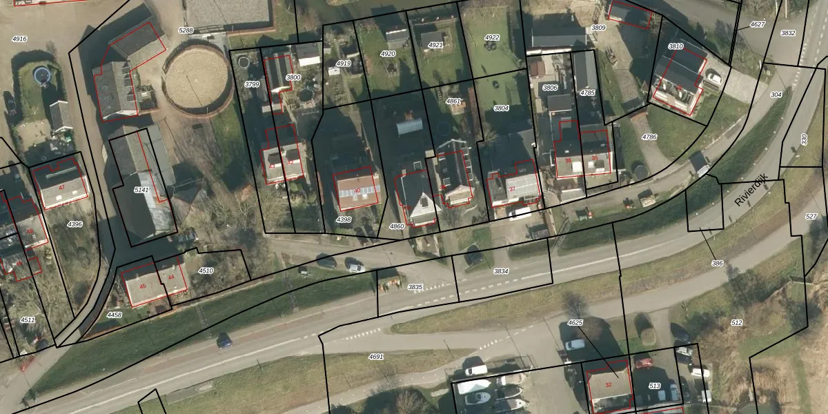 Het perceel waarop Rivierdijk 39 staat heeft een oppervlakte van 430 m². Dit is een groot perceel. De perceeloppervlakte wordt geregistreerd door het Kadaster. Gedetailleerde informatie over de maten van dit perceel kunt u vinden in het rapport Kadastrale kaart met maatvoering van Rivierdijk 39.