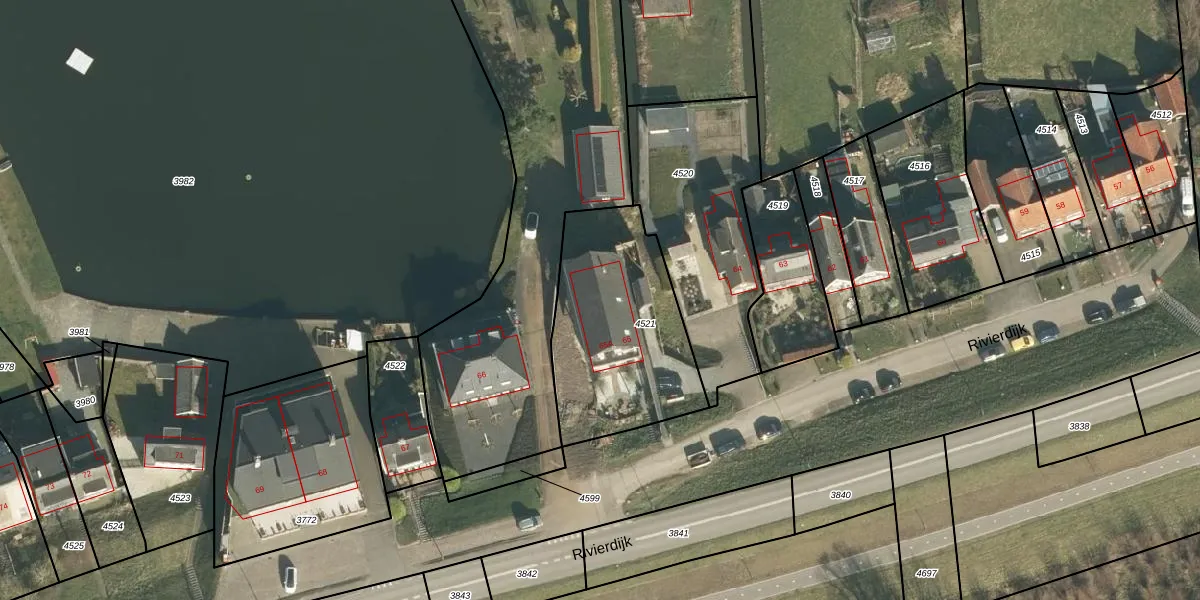 Het perceel waarop Rivierdijk 65 staat heeft een oppervlakte van 752 m². Dit is een groot perceel. De perceeloppervlakte wordt geregistreerd door het Kadaster. Gedetailleerde informatie over de maten van dit perceel kunt u vinden in het rapport Kadastrale kaart met maatvoering van Rivierdijk 65.