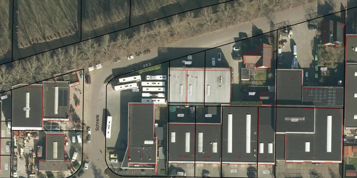 Het perceel waarop Schrank 7 staat heeft een oppervlakte van 556 m². Dit is een groot perceel. De perceeloppervlakte wordt geregistreerd door het Kadaster. Gedetailleerde informatie over de maten van dit perceel kunt u vinden in het rapport Kadastrale kaart met maatvoering van Schrank 7.