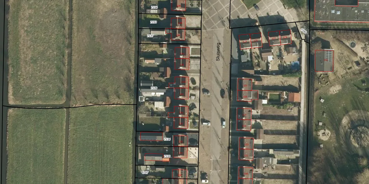 Het perceel waarop Sluisweg 126 staat heeft een oppervlakte van 1624 m². Dit is een zeer groot perceel. De perceeloppervlakte wordt geregistreerd door het Kadaster. Gedetailleerde informatie over de maten van dit perceel kunt u vinden in het rapport Kadastrale kaart met maatvoering van Sluisweg 126.