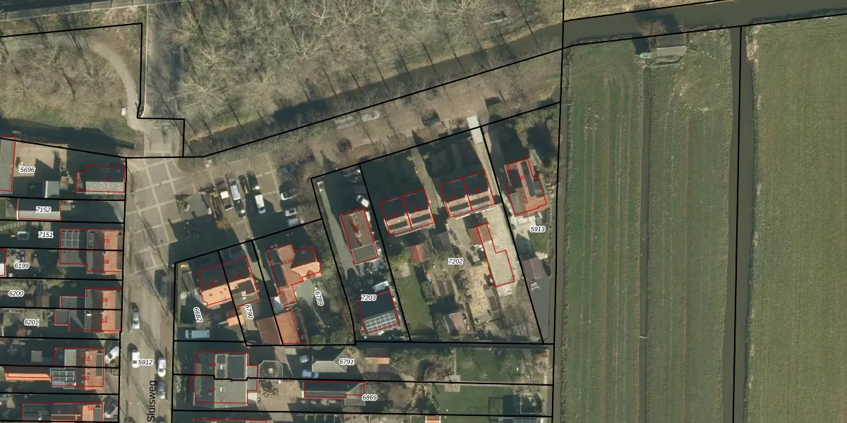 Het perceel waarop Sluisweg 59 staat heeft een oppervlakte van 1463 m². Dit is een zeer groot perceel. De perceeloppervlakte wordt geregistreerd door het Kadaster. Gedetailleerde informatie over de maten van dit perceel kunt u vinden in het rapport Kadastrale kaart met maatvoering van Sluisweg 59.