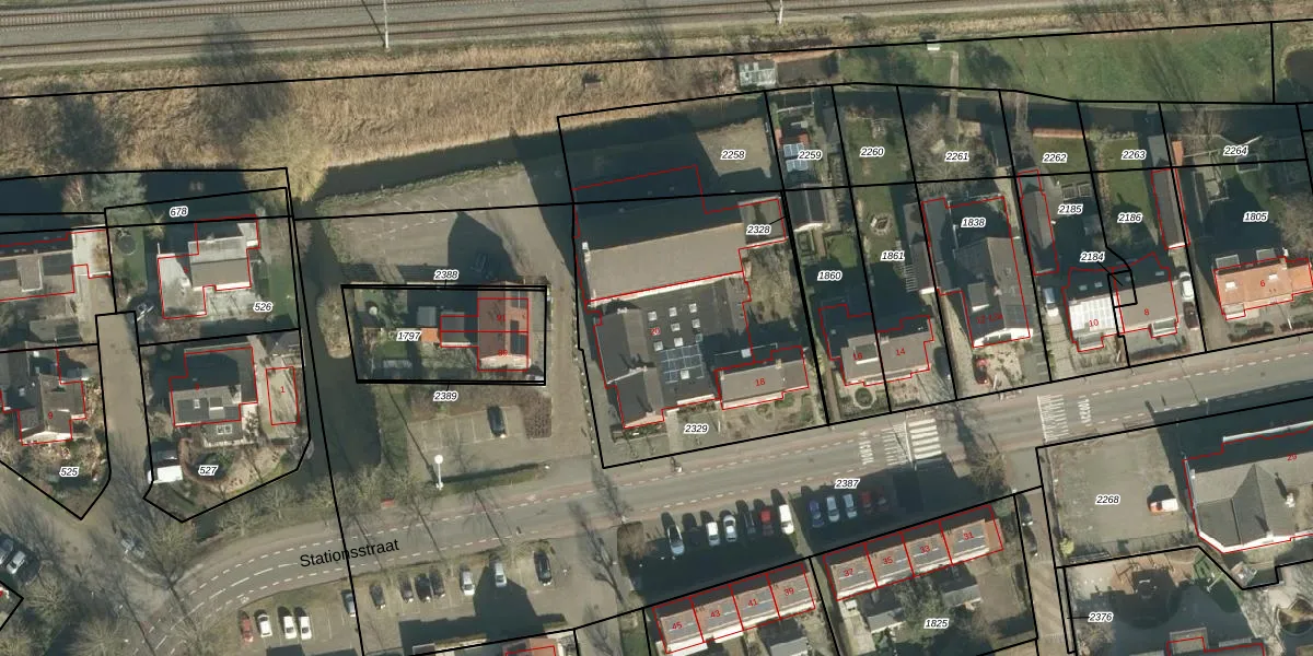 Het perceel waarop Stationsstraat 20 staat heeft een oppervlakte van 1309 m². Dit is een zeer groot perceel. De perceeloppervlakte wordt geregistreerd door het Kadaster. Gedetailleerde informatie over de maten van dit perceel kunt u vinden in het rapport Kadastrale kaart met maatvoering van Stationsstraat 20.
