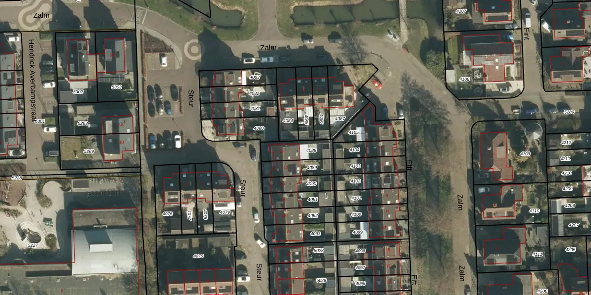 Gebruik de zoekbalk of klik op een perceel voor informatie over de adressen binnen dit perceel.