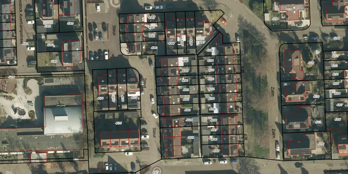 Gebruik de zoekbalk of klik op een perceel voor informatie over de adressen binnen dit perceel.