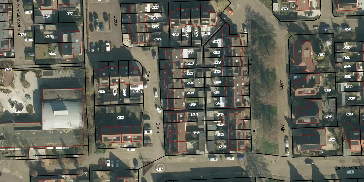 Gebruik de zoekbalk of klik op een perceel voor informatie over de adressen binnen dit perceel.