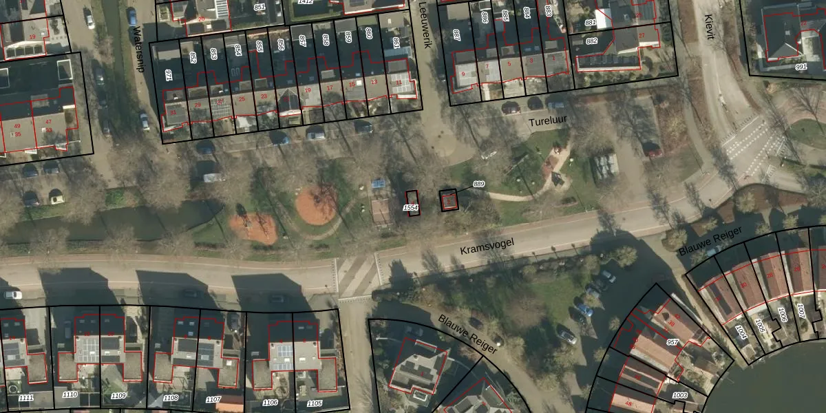 Het perceel waarop Tureluur 4 staat heeft een oppervlakte van 15 m². Dit is een klein perceel. De perceeloppervlakte wordt geregistreerd door het Kadaster. Gedetailleerde informatie over de maten van dit perceel kunt u vinden in het rapport Kadastrale kaart met maatvoering van Tureluur 4.