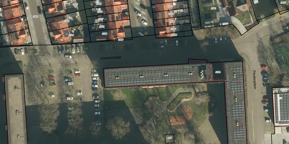 Het perceel waarop Uranusstraat 105 staat heeft een oppervlakte van 2034 m². Dit is een zeer groot perceel. De perceeloppervlakte wordt geregistreerd door het Kadaster. Gedetailleerde informatie over de maten van dit perceel kunt u vinden in het rapport Kadastrale kaart met maatvoering van Uranusstraat 105.