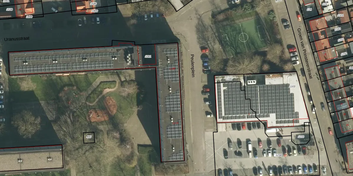 Het perceel waarop Uranusstraat 13 staat heeft een oppervlakte van 2034 m². Dit is een zeer groot perceel. De perceeloppervlakte wordt geregistreerd door het Kadaster. Gedetailleerde informatie over de maten van dit perceel kunt u vinden in het rapport Kadastrale kaart met maatvoering van Uranusstraat 13.