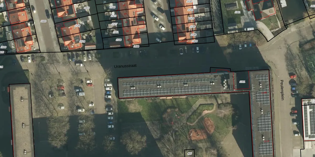 Het perceel waarop Uranusstraat 153 staat heeft een oppervlakte van 2034 m². Dit is een zeer groot perceel. De perceeloppervlakte wordt geregistreerd door het Kadaster. Gedetailleerde informatie over de maten van dit perceel kunt u vinden in het rapport Kadastrale kaart met maatvoering van Uranusstraat 153.