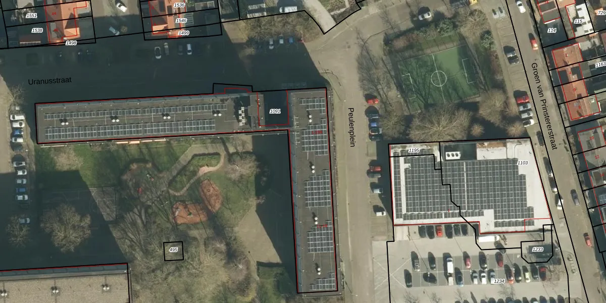 Het perceel waarop Uranusstraat 209 staat heeft een oppervlakte van 2034 m². Dit is een zeer groot perceel. De perceeloppervlakte wordt geregistreerd door het Kadaster. Gedetailleerde informatie over de maten van dit perceel kunt u vinden in het rapport Kadastrale kaart met maatvoering van Uranusstraat 209.