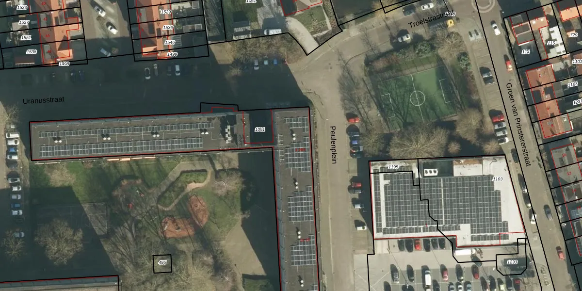Het perceel waarop Uranusstraat 219 staat heeft een oppervlakte van 2034 m². Dit is een zeer groot perceel. De perceeloppervlakte wordt geregistreerd door het Kadaster. Gedetailleerde informatie over de maten van dit perceel kunt u vinden in het rapport Kadastrale kaart met maatvoering van Uranusstraat 219.