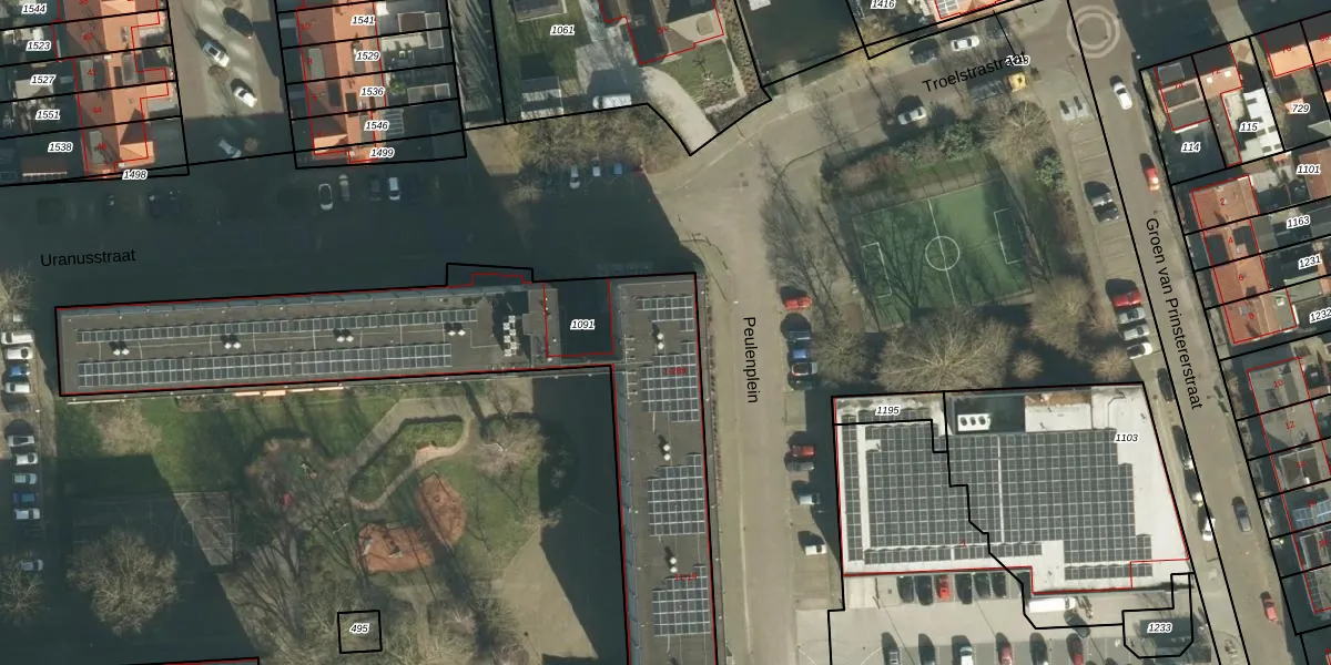 Het perceel waarop Uranusstraat 225 staat heeft een oppervlakte van 2034 m². Dit is een zeer groot perceel. De perceeloppervlakte wordt geregistreerd door het Kadaster. Gedetailleerde informatie over de maten van dit perceel kunt u vinden in het rapport Kadastrale kaart met maatvoering van Uranusstraat 225.