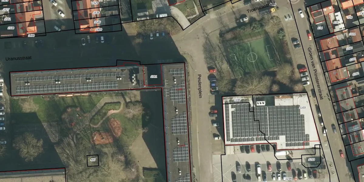Het perceel waarop Uranusstraat 289 staat heeft een oppervlakte van 2034 m². Dit is een zeer groot perceel. De perceeloppervlakte wordt geregistreerd door het Kadaster. Gedetailleerde informatie over de maten van dit perceel kunt u vinden in het rapport Kadastrale kaart met maatvoering van Uranusstraat 289.