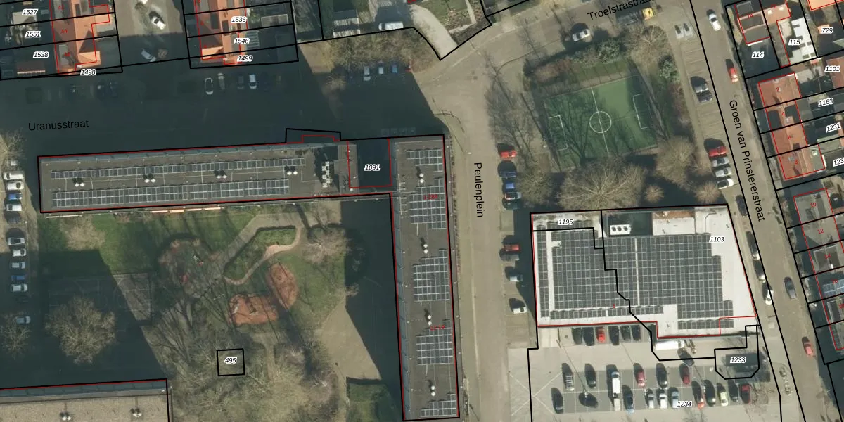 Het perceel waarop Uranusstraat 33 staat heeft een oppervlakte van 2034 m². Dit is een zeer groot perceel. De perceeloppervlakte wordt geregistreerd door het Kadaster. Gedetailleerde informatie over de maten van dit perceel kunt u vinden in het rapport Kadastrale kaart met maatvoering van Uranusstraat 33.