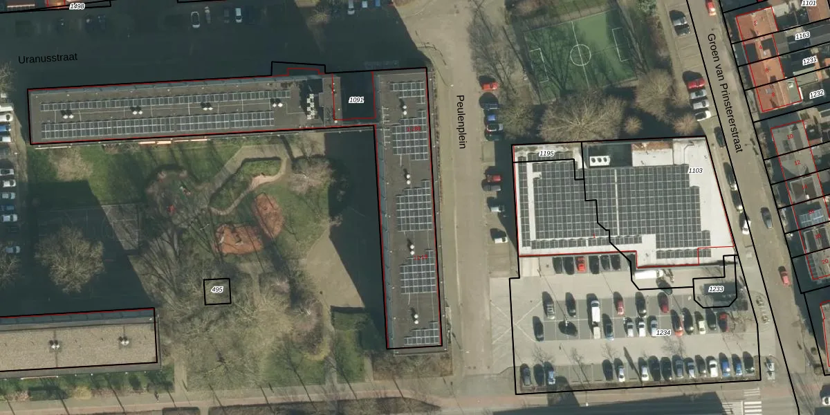 Het perceel waarop Uranusstraat 65 staat heeft een oppervlakte van 2034 m². Dit is een zeer groot perceel. De perceeloppervlakte wordt geregistreerd door het Kadaster. Gedetailleerde informatie over de maten van dit perceel kunt u vinden in het rapport Kadastrale kaart met maatvoering van Uranusstraat 65.