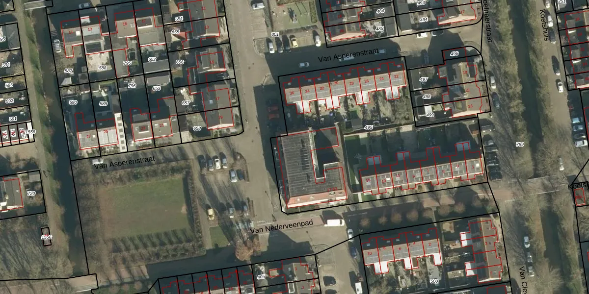 Het perceel waarop Van Nederveenpad 43 staat heeft een oppervlakte van 2666 m². Dit is een zeer groot perceel. De perceeloppervlakte wordt geregistreerd door het Kadaster. Gedetailleerde informatie over de maten van dit perceel kunt u vinden in het rapport Kadastrale kaart met maatvoering van Van Nederveenpad 43.