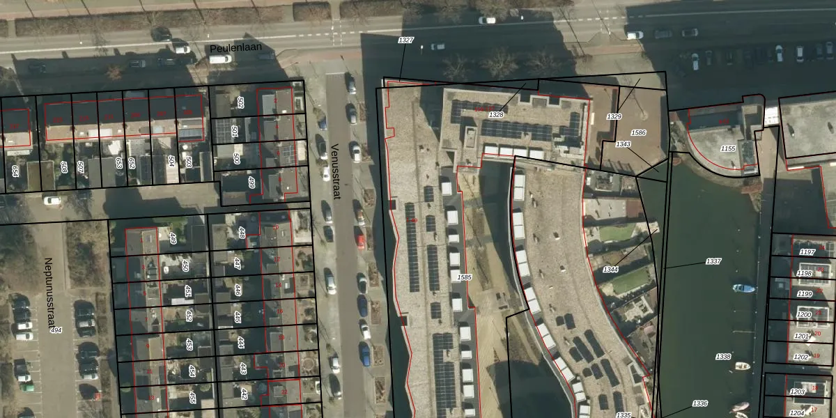 Het perceel waarop Venusstraat 9 staat heeft een oppervlakte van 3600 m². Dit is een zeer groot perceel. De perceeloppervlakte wordt geregistreerd door het Kadaster. Gedetailleerde informatie over de maten van dit perceel kunt u vinden in het rapport Kadastrale kaart met maatvoering van Venusstraat 9.