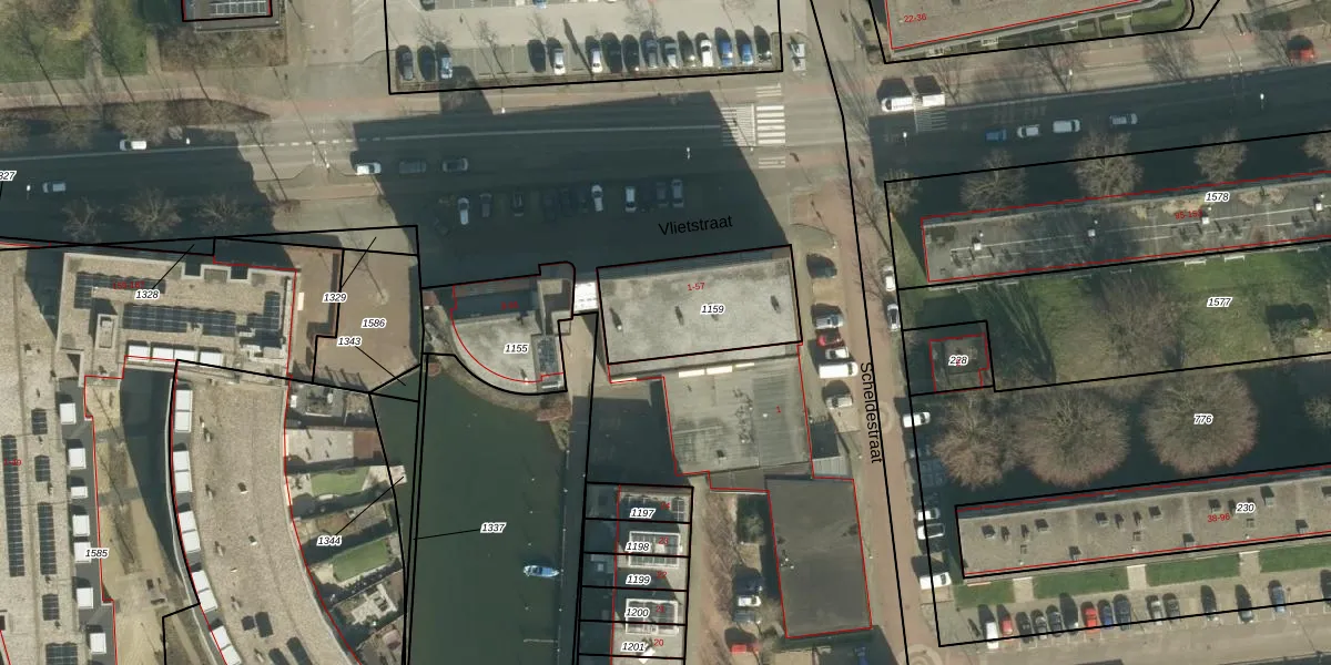 Het perceel waarop Vlietstraat 39 staat heeft een oppervlakte van 427 m². Dit is een groot perceel. De perceeloppervlakte wordt geregistreerd door het Kadaster. Gedetailleerde informatie over de maten van dit perceel kunt u vinden in het rapport Kadastrale kaart met maatvoering van Vlietstraat 39.