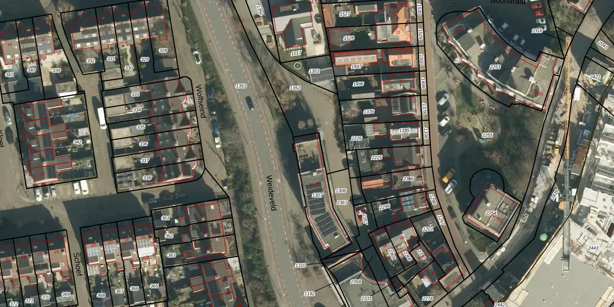Het perceel waarop Weideveld 36 staat heeft een oppervlakte van 370 m². Dit is een groot perceel. De perceeloppervlakte wordt geregistreerd door het Kadaster. Gedetailleerde informatie over de maten van dit perceel kunt u vinden in het rapport Kadastrale kaart met maatvoering van Weideveld 36.