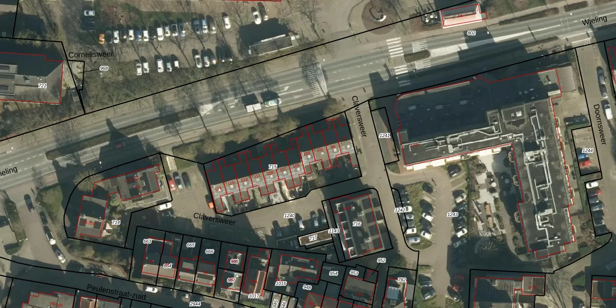 Het perceel waarop Wieling 103 staat heeft een oppervlakte van 977 m². Dit is een groot perceel. De perceeloppervlakte wordt geregistreerd door het Kadaster. Gedetailleerde informatie over de maten van dit perceel kunt u vinden in het rapport Kadastrale kaart met maatvoering van Wieling 103.