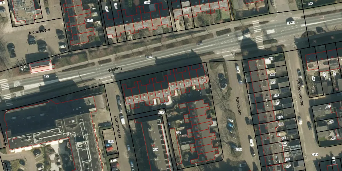 Het perceel waarop Wieling 83 staat heeft een oppervlakte van 2115 m². Dit is een zeer groot perceel. De perceeloppervlakte wordt geregistreerd door het Kadaster. Gedetailleerde informatie over de maten van dit perceel kunt u vinden in het rapport Kadastrale kaart met maatvoering van Wieling 83.