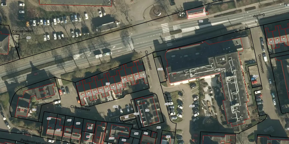 Het perceel waarop Wieling 97 staat heeft een oppervlakte van 977 m². Dit is een groot perceel. De perceeloppervlakte wordt geregistreerd door het Kadaster. Gedetailleerde informatie over de maten van dit perceel kunt u vinden in het rapport Kadastrale kaart met maatvoering van Wieling 97.