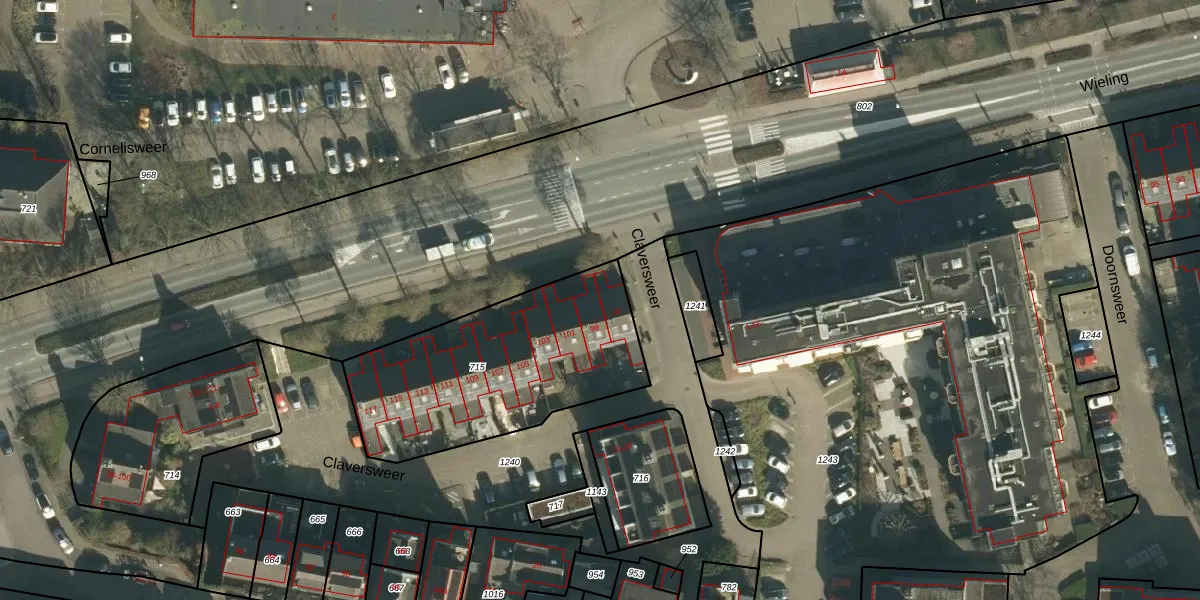Het perceel waarop Wieling 99 staat heeft een oppervlakte van 977 m². Dit is een groot perceel. De perceeloppervlakte wordt geregistreerd door het Kadaster. Gedetailleerde informatie over de maten van dit perceel kunt u vinden in het rapport Kadastrale kaart met maatvoering van Wieling 99.