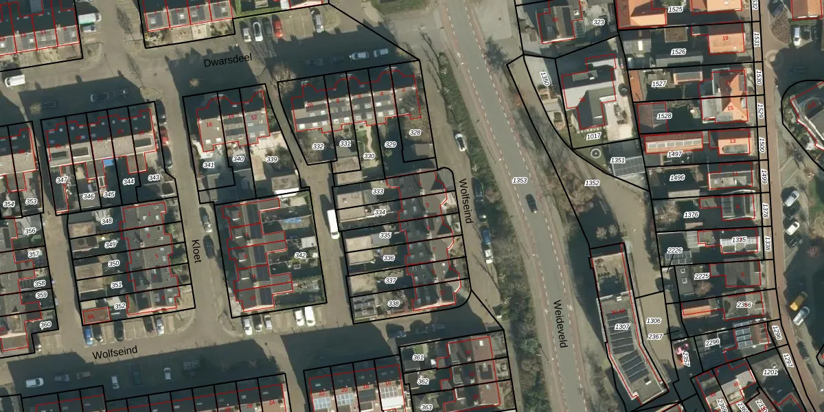 Gebruik de zoekbalk of klik op een perceel voor informatie over de adressen binnen dit perceel.