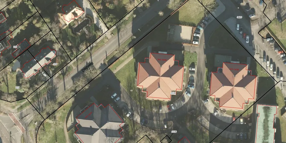 Het perceel waarop Dilgtweg 1-b-30 staat heeft een oppervlakte van 1,1 ha. Dit is een zeer groot perceel. De perceeloppervlakte wordt geregistreerd door het Kadaster. Gedetailleerde informatie over de maten van dit perceel kunt u vinden in het rapport Kadastrale kaart met maatvoering van Dilgtweg 1-b-30.