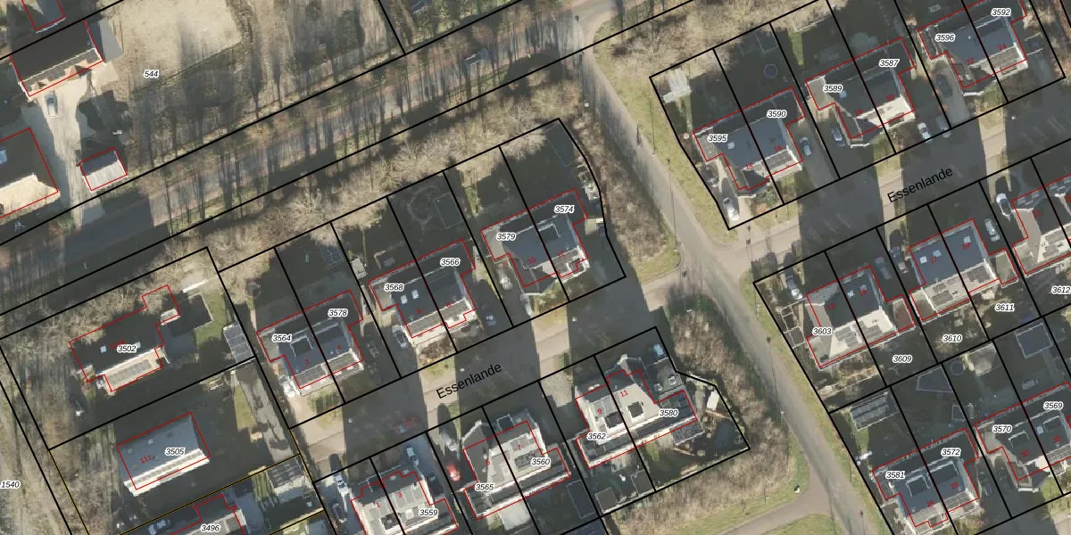 Essenlande 10 is gelegen op kadastraal perceel HRN01M3579. Deze kadastrale aanduiding is uniek en wordt gebruikt door het Kadaster om eigendomsrechten en andere zakelijke rechten vast te leggen. Het perceel maakt onderdeel uit van de kadastrale gemeente Haren.
