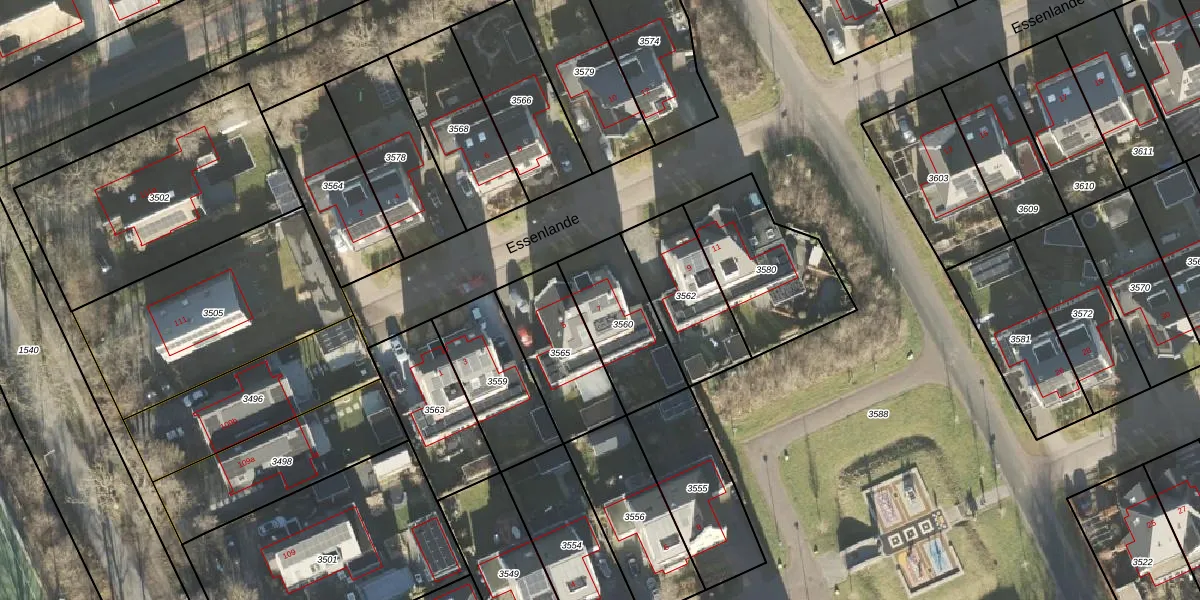 Essenlande 7 is gelegen op kadastraal perceel HRN01M3560. Deze kadastrale aanduiding is uniek en wordt gebruikt door het Kadaster om eigendomsrechten en andere zakelijke rechten vast te leggen. Het perceel maakt onderdeel uit van de kadastrale gemeente Haren.