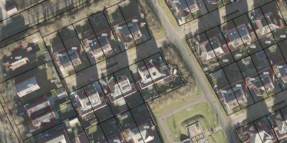 Essenlande 9 is gelegen op kadastraal perceel HRN01M3562. Deze kadastrale aanduiding is uniek en wordt gebruikt door het Kadaster om eigendomsrechten en andere zakelijke rechten vast te leggen. Het perceel maakt onderdeel uit van de kadastrale gemeente Haren.