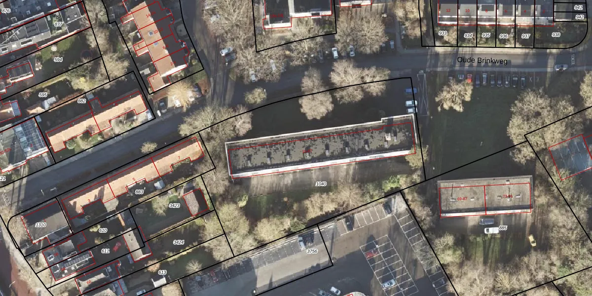 Oude Brinkweg 21 is gelegen op kadastraal perceel HRN01M1040. Deze kadastrale aanduiding is uniek en wordt gebruikt door het Kadaster om eigendomsrechten en andere zakelijke rechten vast te leggen. Het perceel maakt onderdeel uit van de kadastrale gemeente Haren.