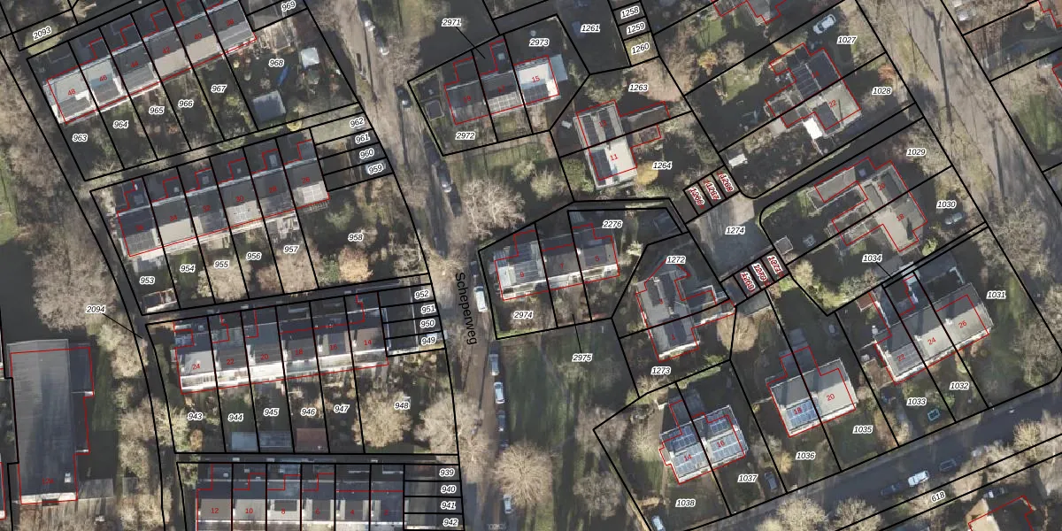 Scheperweg 9 is gelegen op kadastraal perceel HRN01M2974. Deze kadastrale aanduiding is uniek en wordt gebruikt door het Kadaster om eigendomsrechten en andere zakelijke rechten vast te leggen. Het perceel maakt onderdeel uit van de kadastrale gemeente Haren.