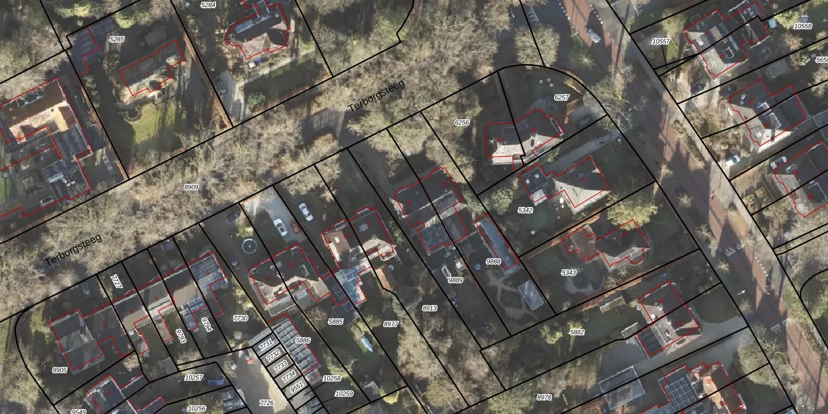 Terborgsteeg 19 is gelegen op kadastraal perceel HRN01K9889. Deze kadastrale aanduiding is uniek en wordt gebruikt door het Kadaster om eigendomsrechten en andere zakelijke rechten vast te leggen. Het perceel maakt onderdeel uit van de kadastrale gemeente Haren.