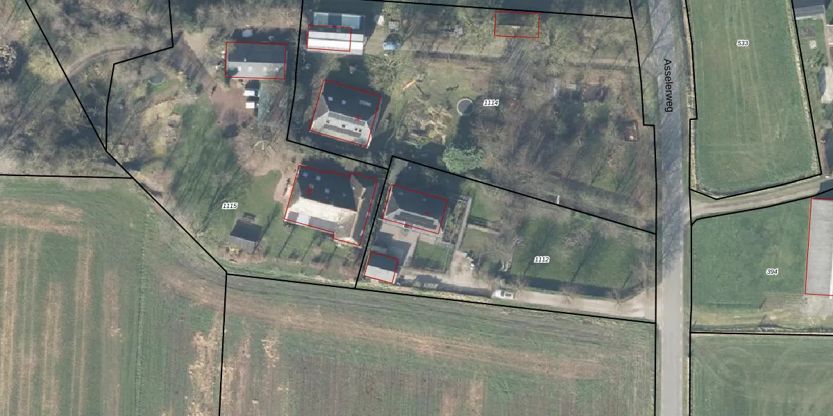 Het perceel waarop Asselerweg 3 staat heeft een oppervlakte van 1870 m². Dit is een zeer groot perceel. De perceeloppervlakte wordt geregistreerd door het Kadaster. Gedetailleerde informatie over de maten van dit perceel kunt u vinden in het rapport Kadastrale kaart met maatvoering van Asselerweg 3.