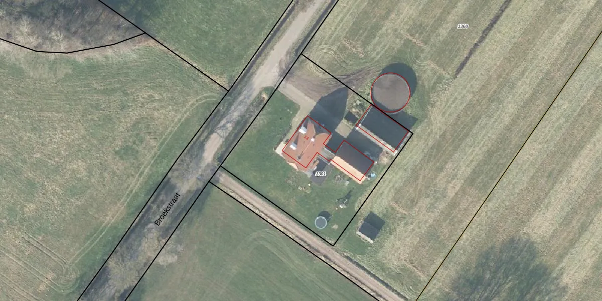 Het perceel waarop Broekstraat 13 staat heeft een oppervlakte van 2100 m². Dit is een zeer groot perceel. De perceeloppervlakte wordt geregistreerd door het Kadaster. Gedetailleerde informatie over de maten van dit perceel kunt u vinden in het rapport Kadastrale kaart met maatvoering van Broekstraat 13.