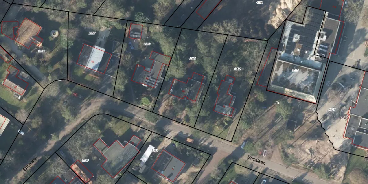 Ericalaan 16 is gelegen op kadastraal perceel AMN00B2391. Deze kadastrale aanduiding is uniek en wordt gebruikt door het Kadaster om eigendomsrechten en andere zakelijke rechten vast te leggen. Het perceel maakt onderdeel uit van de kadastrale gemeente Almen.