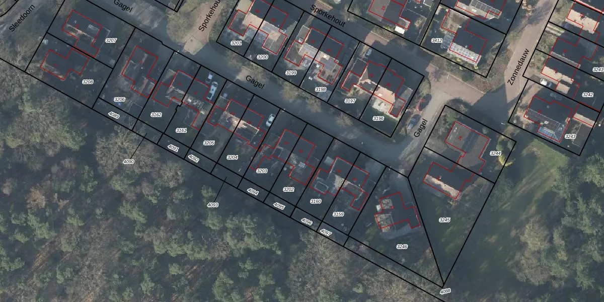 Het perceel waarop Gagel 16 staat heeft een oppervlakte van 259 m². Dit is een middelgroot perceel. De perceeloppervlakte wordt geregistreerd door het Kadaster. Gedetailleerde informatie over de maten van dit perceel kunt u vinden in het rapport Kadastrale kaart met maatvoering van Gagel 16.