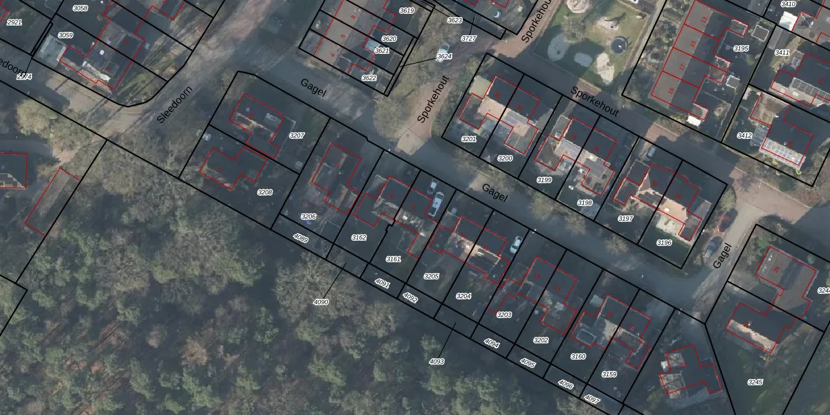 Gebruik de zoekbalk of klik op een perceel voor informatie over de adressen binnen dit perceel.