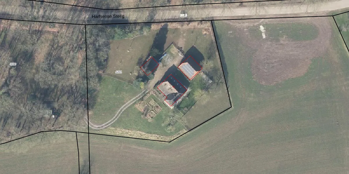 Harfsense Steeg 12 is gelegen op kadastraal perceel GSL01F1221. Deze kadastrale aanduiding is uniek en wordt gebruikt door het Kadaster om eigendomsrechten en andere zakelijke rechten vast te leggen. Het perceel maakt onderdeel uit van de kadastrale gemeente Gorssel.