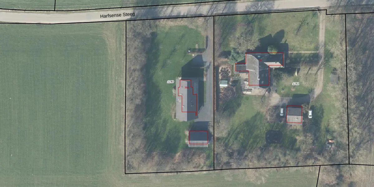 Het perceel waarop Harfsense Steeg 36-a staat heeft een oppervlakte van 3885 m². Dit is een zeer groot perceel. De perceeloppervlakte wordt geregistreerd door het Kadaster. Gedetailleerde informatie over de maten van dit perceel kunt u vinden in het rapport Kadastrale kaart met maatvoering van Harfsense Steeg 36-a.