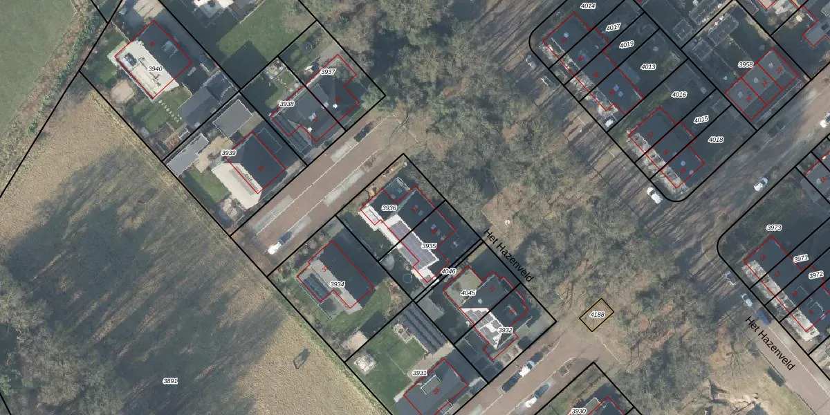 Het Hazenveld 31 is gelegen op kadastraal perceel AMN00B3936. Deze kadastrale aanduiding is uniek en wordt gebruikt door het Kadaster om eigendomsrechten en andere zakelijke rechten vast te leggen. Het perceel maakt onderdeel uit van de kadastrale gemeente Almen.