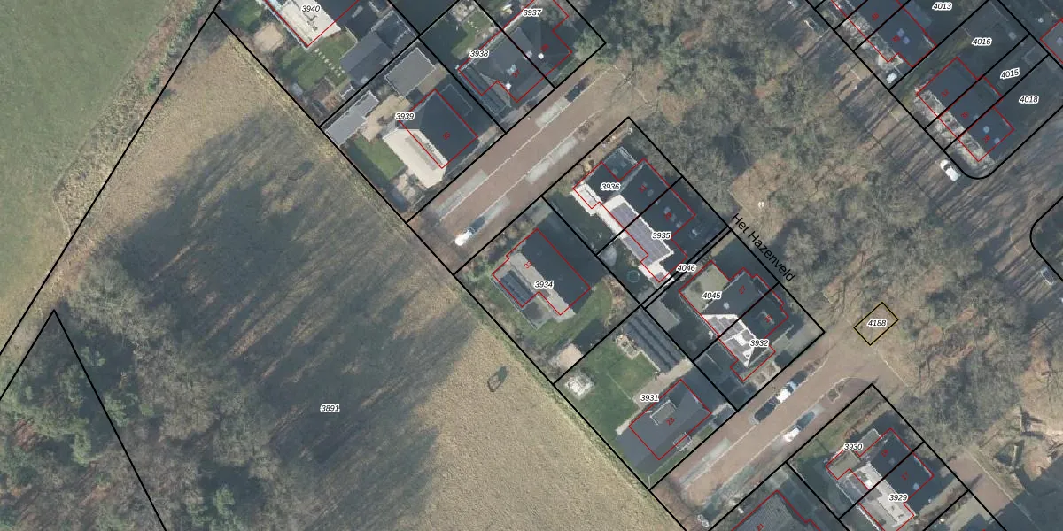 Het Hazenveld 33 is gelegen op kadastraal perceel AMN00B3934. Deze kadastrale aanduiding is uniek en wordt gebruikt door het Kadaster om eigendomsrechten en andere zakelijke rechten vast te leggen. Het perceel maakt onderdeel uit van de kadastrale gemeente Almen.