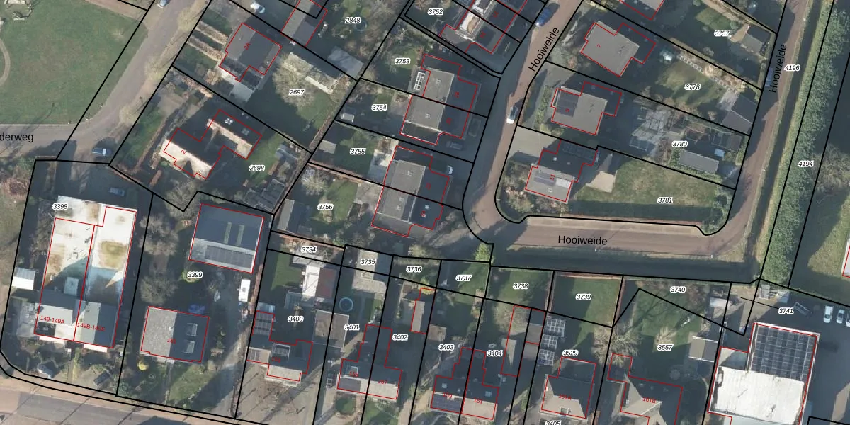 Hooiweide 24 is gelegen op kadastraal perceel AMN00B3756. Deze kadastrale aanduiding is uniek en wordt gebruikt door het Kadaster om eigendomsrechten en andere zakelijke rechten vast te leggen. Het perceel maakt onderdeel uit van de kadastrale gemeente Almen.