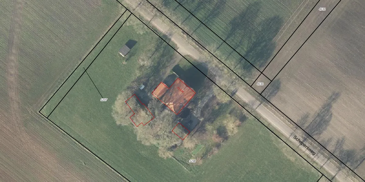 Het perceel waarop Schepersweg 22 staat heeft een oppervlakte van 9570 m². Dit is een zeer groot perceel. De perceeloppervlakte wordt geregistreerd door het Kadaster. Gedetailleerde informatie over de maten van dit perceel kunt u vinden in het rapport Kadastrale kaart met maatvoering van Schepersweg 22.