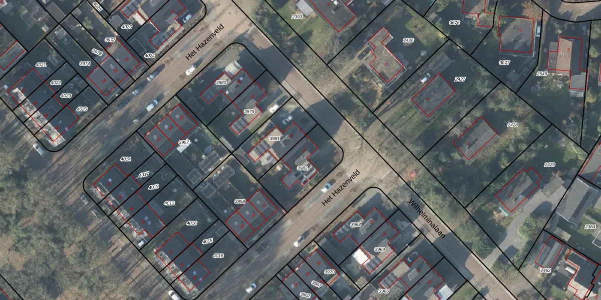 Gebruik de zoekbalk of klik op een perceel voor informatie over de adressen binnen dit perceel.