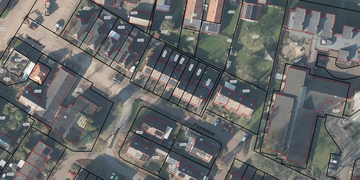 Gebruik de zoekbalk of klik op een perceel voor informatie over de adressen binnen dit perceel.