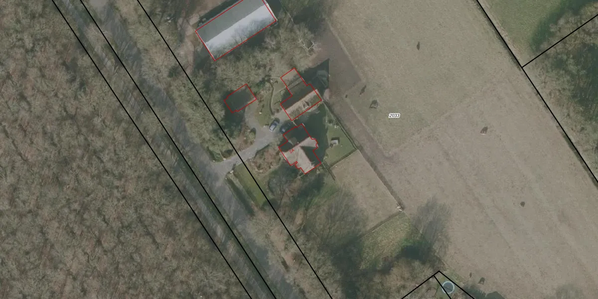 Het perceel waarop Bokkeleane 2-A staat heeft een oppervlakte van 2,6 ha. Dit is een zeer groot perceel. De perceeloppervlakte wordt geregistreerd door het Kadaster. Gedetailleerde informatie over de maten van dit perceel kunt u vinden in het rapport Kadastrale kaart met maatvoering van Bokkeleane 2-A.