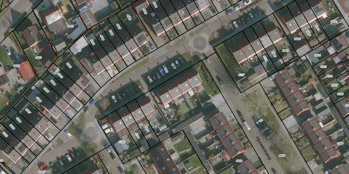 Het perceel waarop Boekweitstrjitte 25 staat heeft een oppervlakte van 4102 m². Dit is een zeer groot perceel. De perceeloppervlakte wordt geregistreerd door het Kadaster. Gedetailleerde informatie over de maten van dit perceel kunt u vinden in het rapport Kadastrale kaart met maatvoering van Boekweitstrjitte 25.
